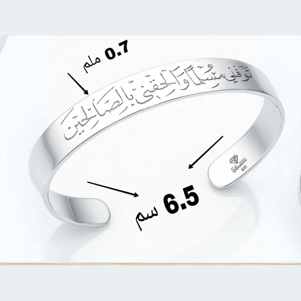 - النقش العربي بخط كوفي هندسي محفور بدقة حسب الطلب، حيث يمكن تخصيص الاسم أو التاريخ أو عبارة قصيرة لتصبح كل أسوار قطعة فريدة.